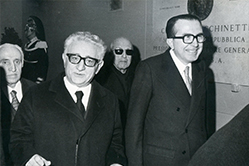 1977年 时任意大利总统乔瓦尼·利昂纳(Giovanni Leone)视察罗马博物馆时,穿上了SALMEDICI品牌的鞋履; |